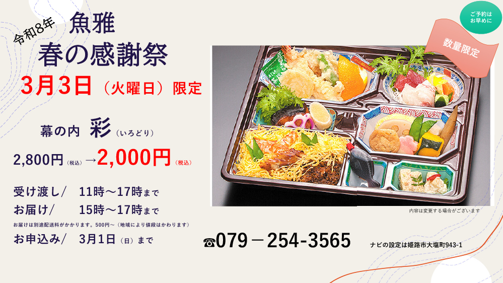 3月3日限定!ご予約は3月1日まで